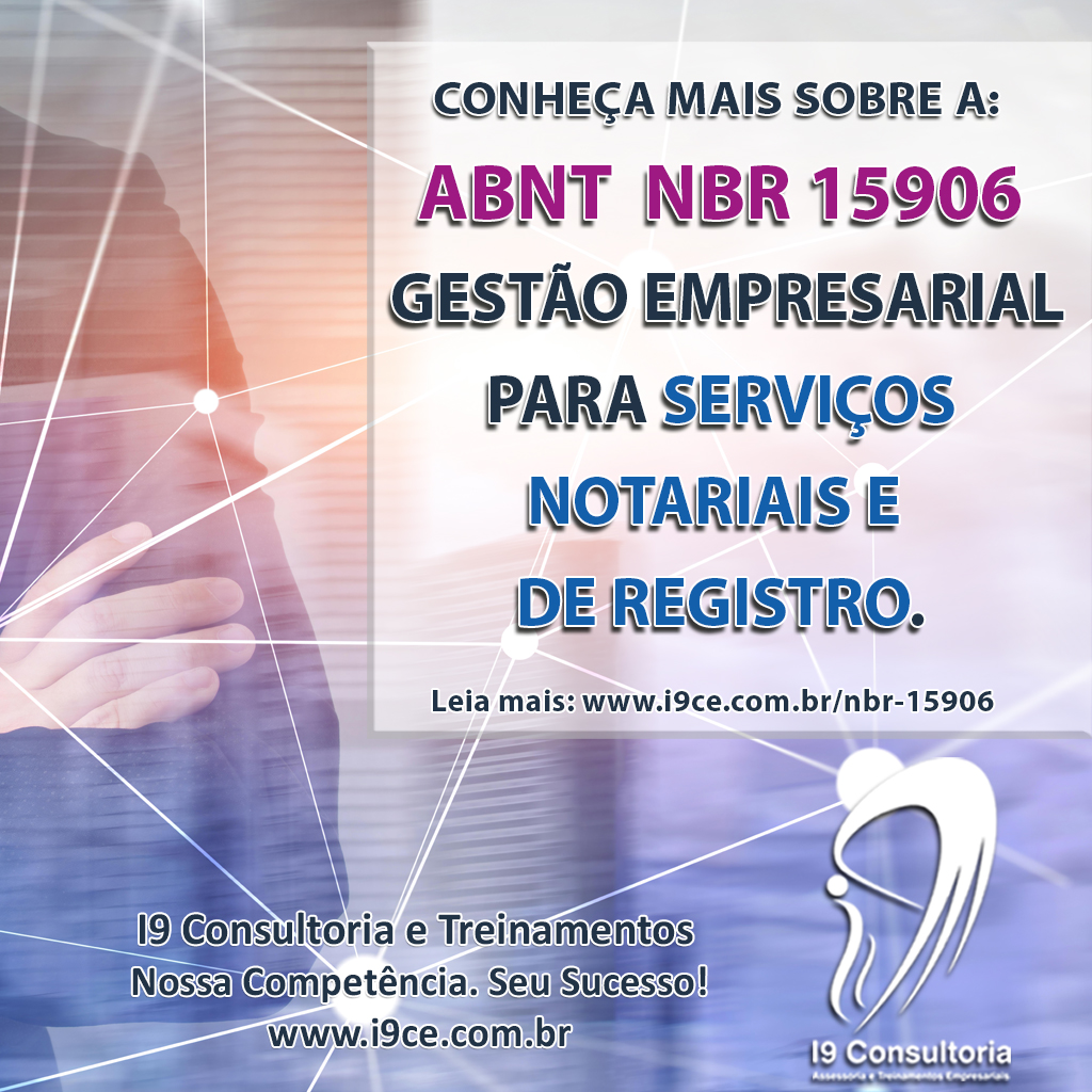 A norma ABNT NBR 15906:2010 é uma norma de Gestão empresarial para serviços notariais e de registro – Requisitos. A norma estabelece os requisitos de sistema de gestão empresarial para demonstrar a capacidade dos serviços notariais e de registro de gerir seus processos com qualidade, de forma a satisfazer as partes interessadas, atender aos requisitos legais, elementos de gestão socioambiental, saúde e segurança ocupacional.