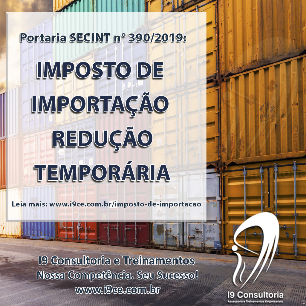 Portaria SECINT n° 390/2019 – IMPOSTO DE IMPORTAÇÃO – REDUÇÃO TEMPORÁRIA