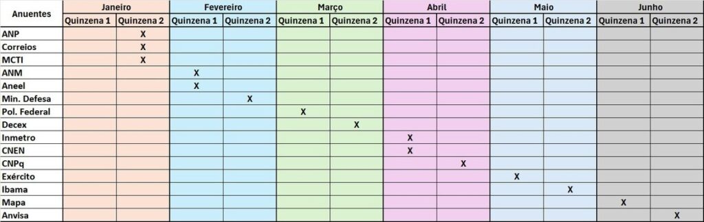 Para os órgãos anuentes (etapas 1 e 2), temos: