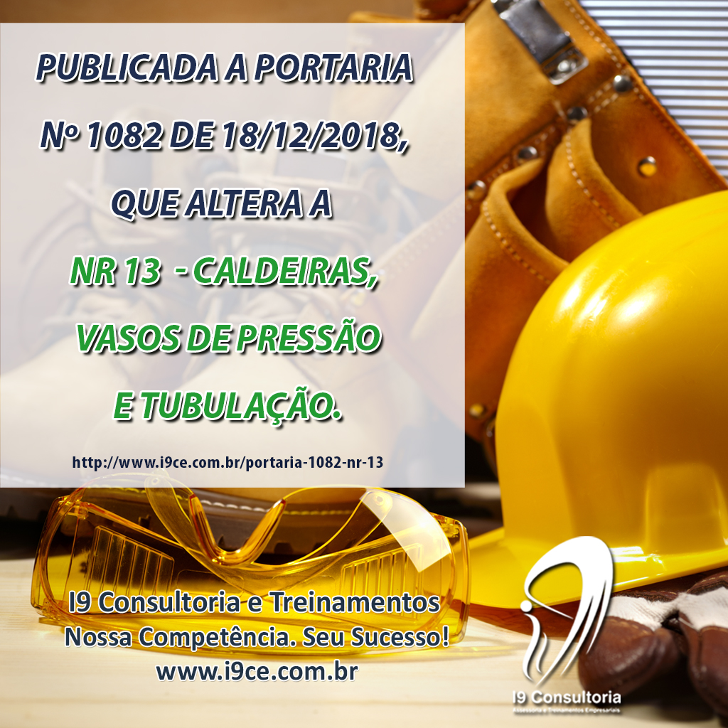 Foi publicada no Diário Oficial da União dia 18 de dezembro de 2018 a Portaria Nº 1082, que altera a Norma Regulamentadora NR 13 – Caldeiras, Vasos de Pressão e Tubulação