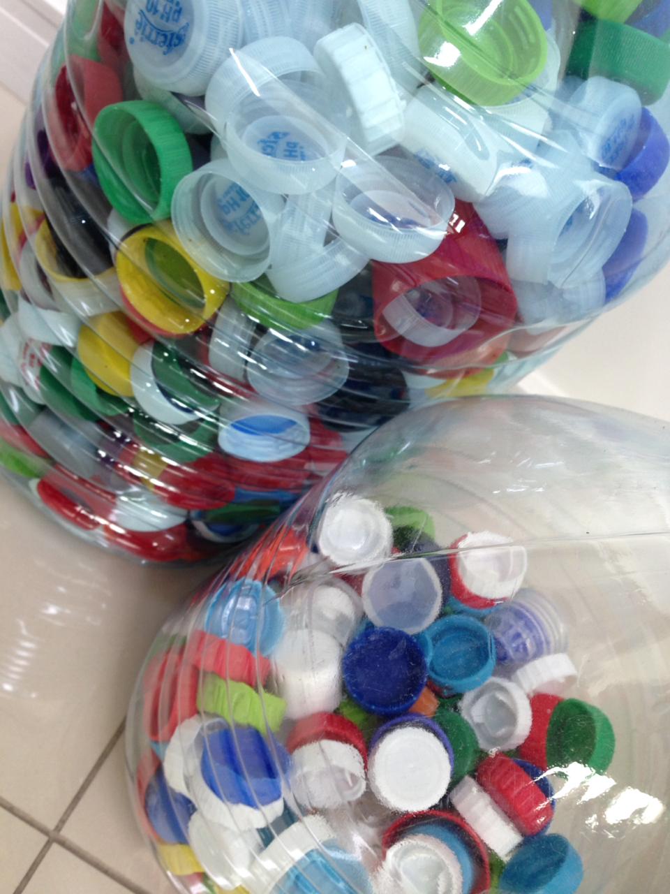 Nossa equipe resolveu se unir e juntar tampinhas de plástico (de garrafas pet, produtos de higiene, remédios, sucos, leites e iogurtes) que seriam jogadas no lixo, com o objetivo de ajudar instituições que cuidam de animais abandonados.